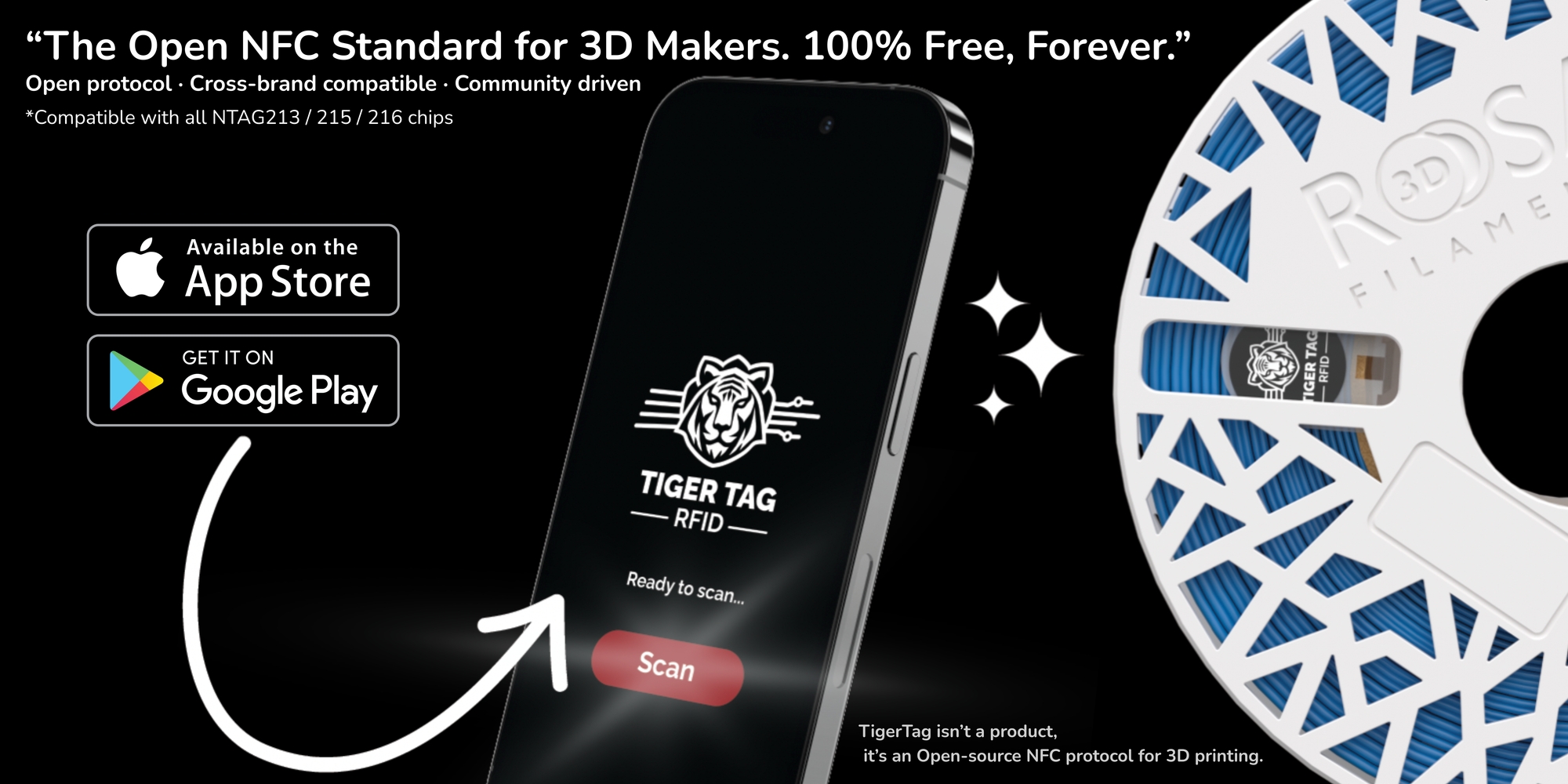 "Made for Makers. Open to Everyone. Born from the community, TigerTag empowers users with real data and total freedom. 100% open-source, it connects your material, printers, and brands under one universal language today and tomorrow. Join the movement. Connect your world with TigerTag."